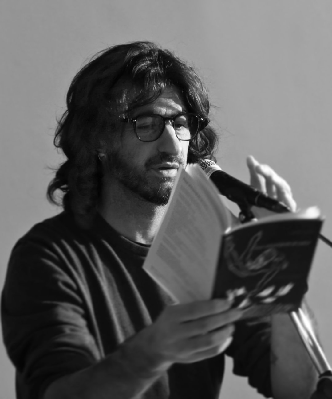 Né en 1978 à Lyon, double nationalité : française et italienne et aux appartenances grecques et tunisiennes. Dimitri Porcu est musicien et poète. Il se produit depuis plus d’une trentaine d’année sur différentes scènes en France et à l’étranger, avec de nombreux projets mêlant toujours la parole aux notes. Animateur d’atelier de créations artistiques (écriture – poésie, musique, mise en voix), il est aussi chargé de la médiation et de l’action culturelle pour l’association Espace Pandora.